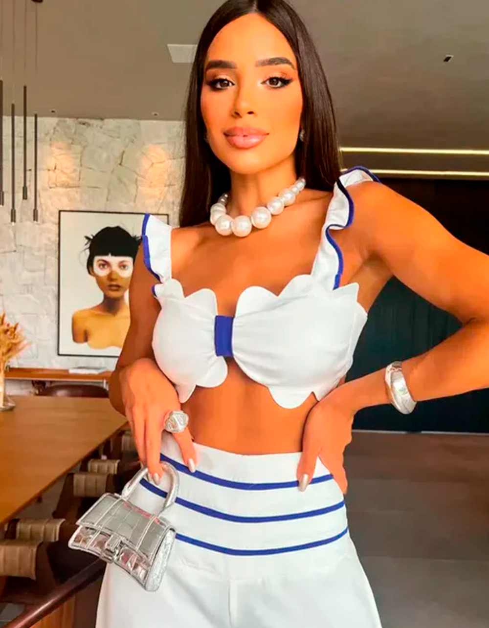 Su top proporciona sensualidad y elegancia al conjunto, mientras que su diseño en forma de flor ofrece un look moderno y versátil. El pantalón es ideal, ya que gracias a su corte holgado y a su cinturilla elástica, se adapta a la perfección a cualquier figura. Confeccionado en algodón y poliéster de alta calidad, garantiza comodidad y un ajuste favorecedor, lo que lo convierte en un imprescindible en tu armario. ¡Usa ambas prendas o combínalas por separado y prepárate para brillar!