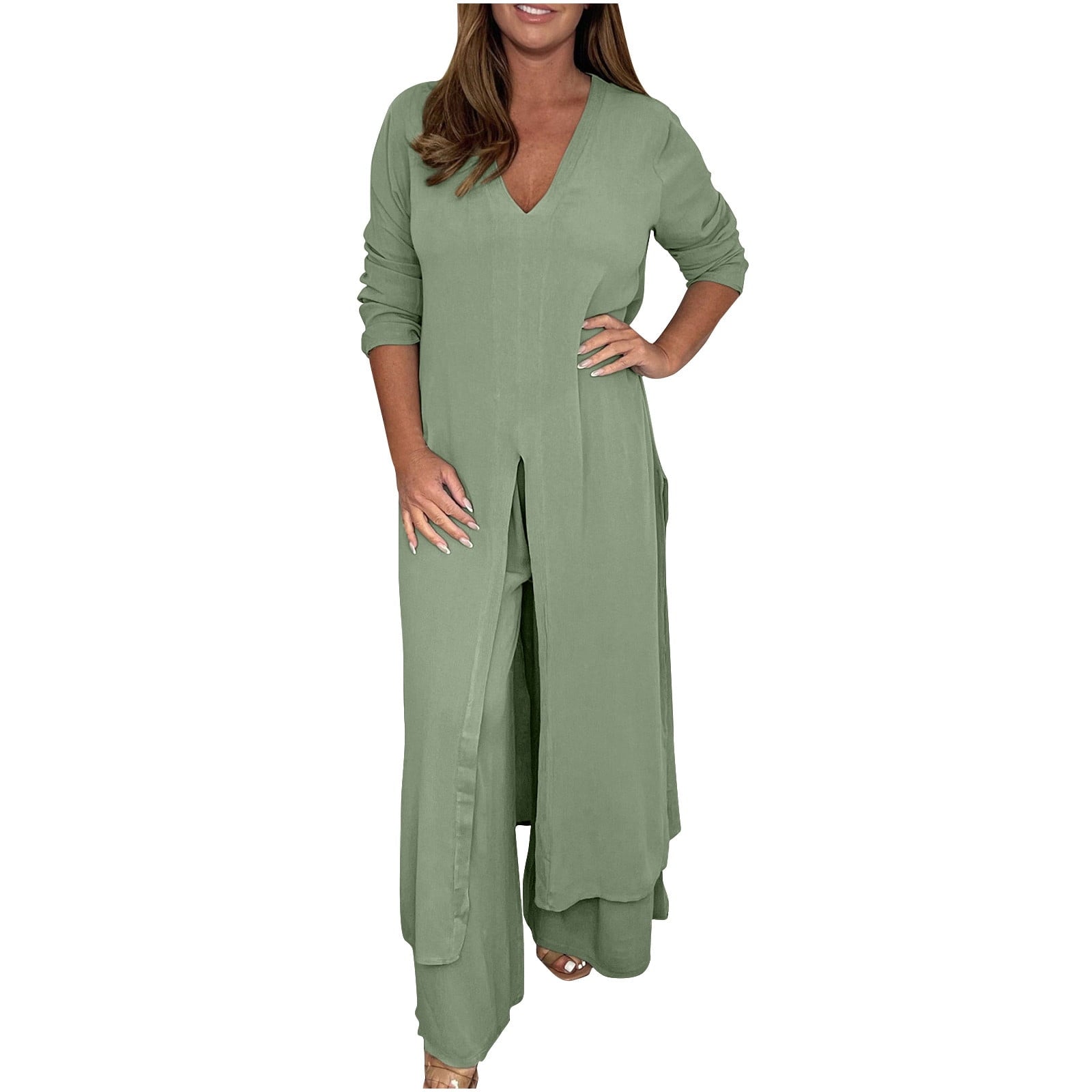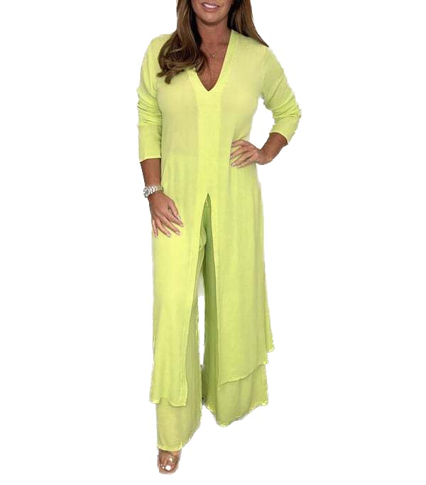 Diseñado para el día a día así como para ocasiones formales, es ligero y cómodo, permitiéndote usarlo en multitud de ocasiones. Gracias a su tejido de algodón y poliéster de primera calidad, se adapta a la perfección a cualquier figura y su cuidado es sencillo, por lo que seguirá como nuevo después de cada lavado. Su top largo con escote de pico junto con su pantalón ancho, lo convierten en una opción elegante y fácil de llevar, ayudándote a mantener tu estilo propio. Lo mejor de este conjunto es su versatilidad, ya que puedes usar el top largo y los pantalones anchos juntos o combinarlos por separado con otros prendas.